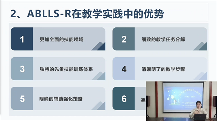 在简单介绍过孤独症是什么之后,中心许老师开始讲述中心使用的ABLLS-R评估工具。
