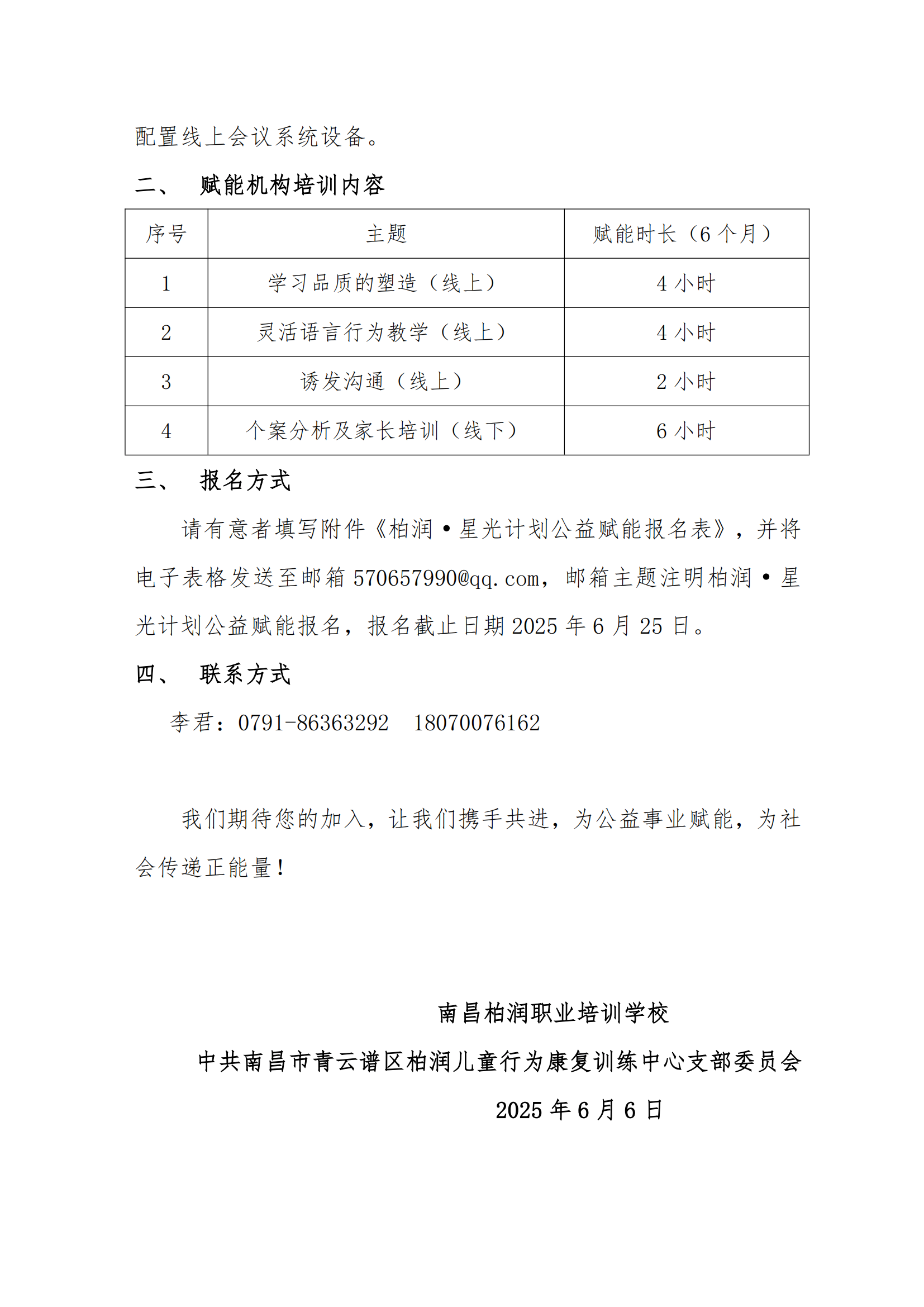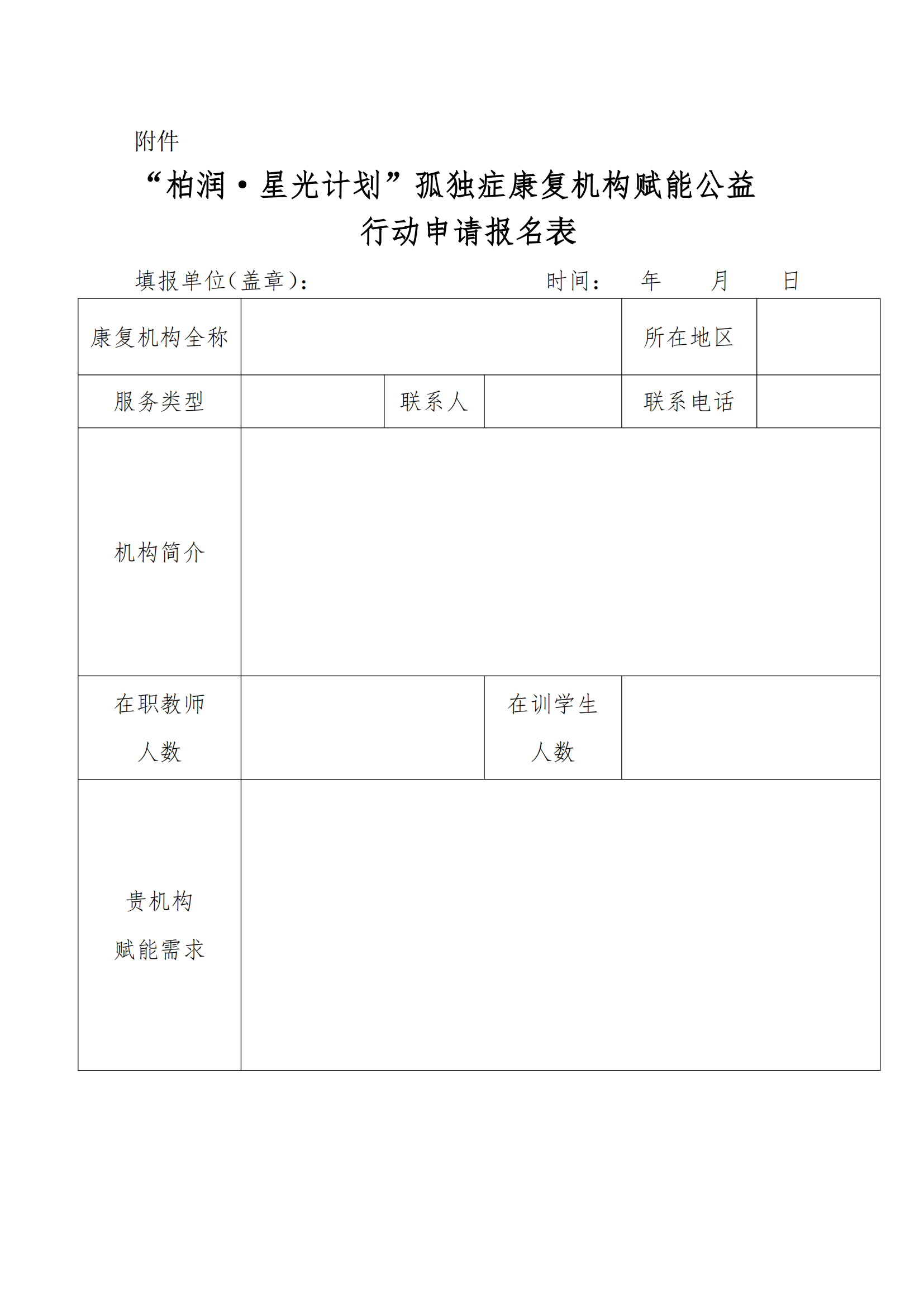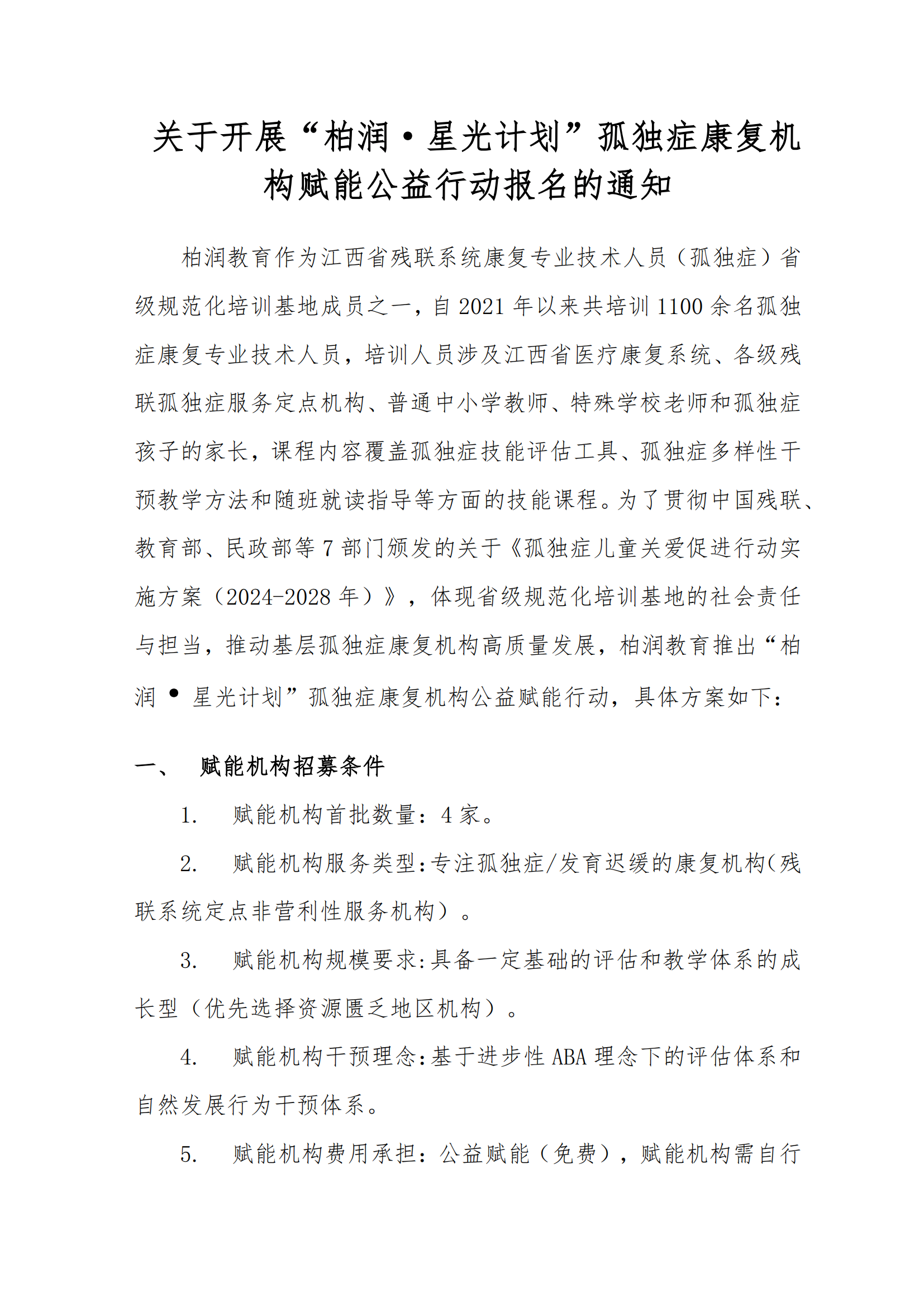 关于开展“柏润·星光计划”孤独症康复机构赋能公益行动报名的通知