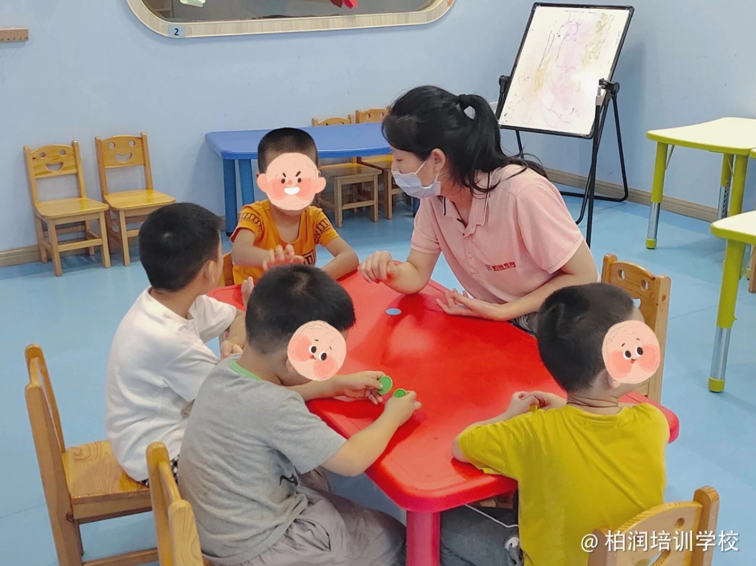 课程形式:主要以一对一为主,根据评估结果实施IEP教学计划,严格遵循科学干预方法,以桌面、自然情景及游戏相结合的教学形式为主。记录学生具体反应,做到科学评估、具体干预、客观记录。
