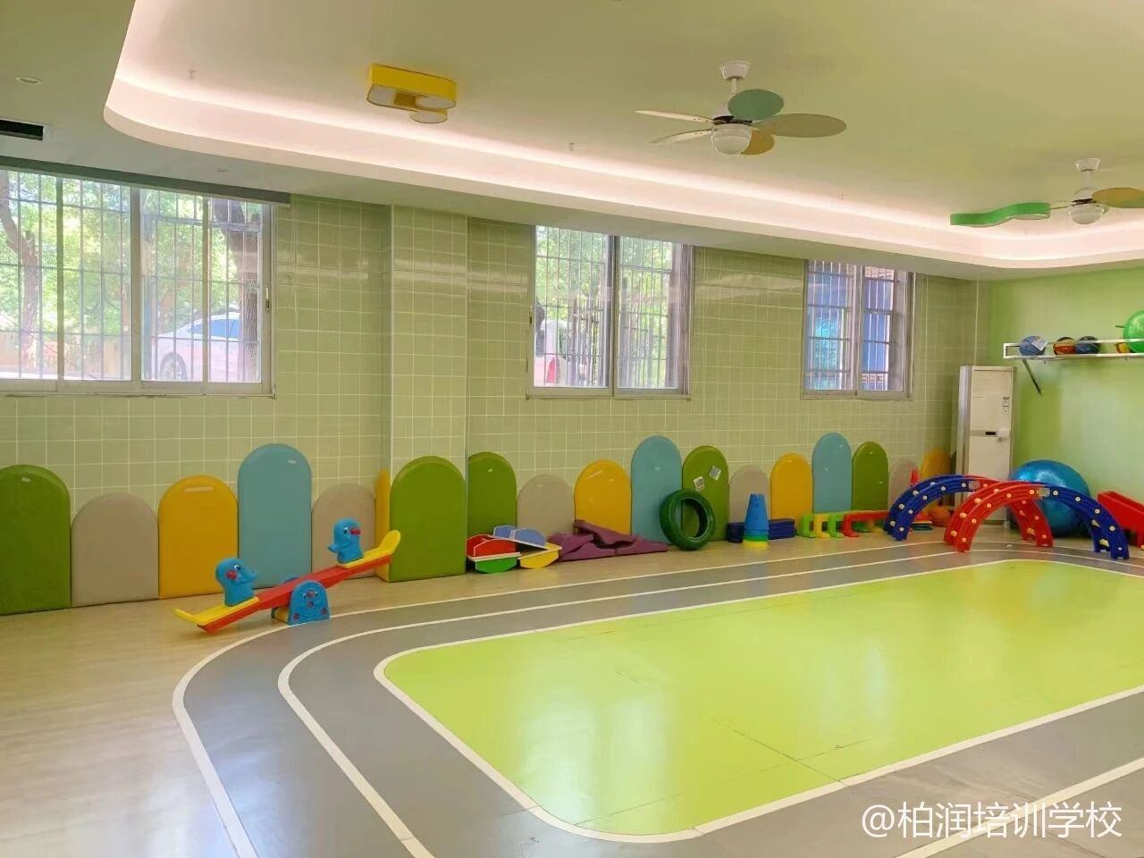 机构分为上下两层,共有12间一对一干预教室、2间感觉统合教室、1间社交情景教室、1间泛化个训、2间集体课教室以及1间音乐律动教室。