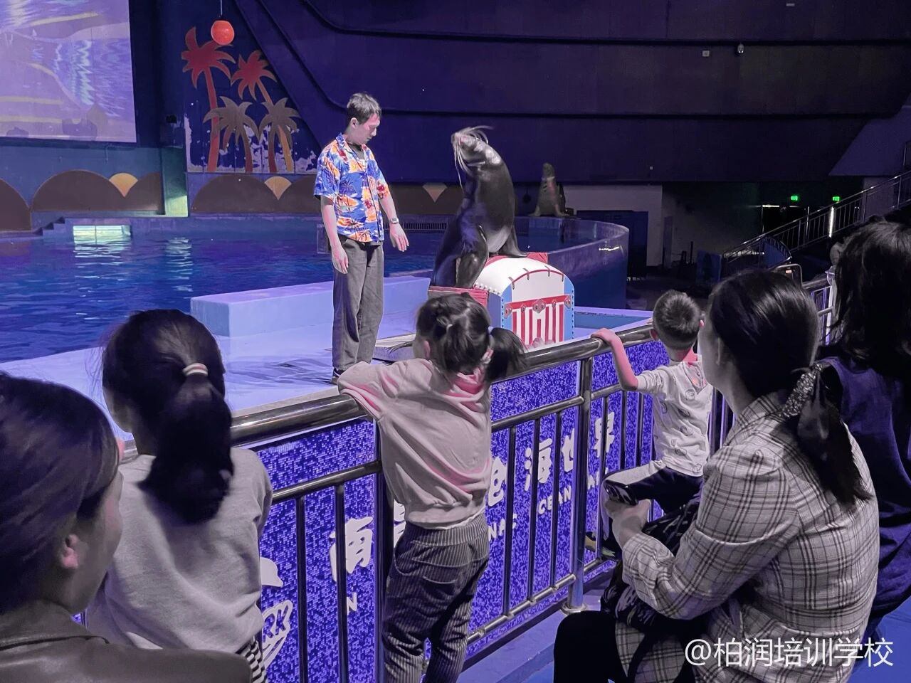 下午的动物表演秀令人惊喜连连。海狮如芭蕾舞者般优雅地旋转,欢快地鼓掌,仿佛在向观众致以最诚挚的谢意。与在场的观众亲密互动时,海狮们灵巧地套进观众抛出的彩色圈圈,现场充满了孩子们的欢笑声和观众们的热烈掌声。紧接着,海豚们如海洋精灵般登场,它们在水中翻跃、旋转,动作敏捷而优雅。海豚们飞快地带着驯养师向前游,与驯养师在水中花式游泳,甚至将驯养师顶起,让其在空中旋转,每一个动作都充满了力量与美感。海豚们展现的回声定位能力更是对海洋世界的深刻洞察,令人叹为观止。随后观看了美人鱼表演,也是本次活动的亮点之一。她们不带氧气瓶,在水中憋气的同时还能保持动作优美,仿佛真的是来自海洋的仙子,令人赞叹不已。整场表演精彩纷呈,让孩子们感受到了海洋生物的魅力和活力。