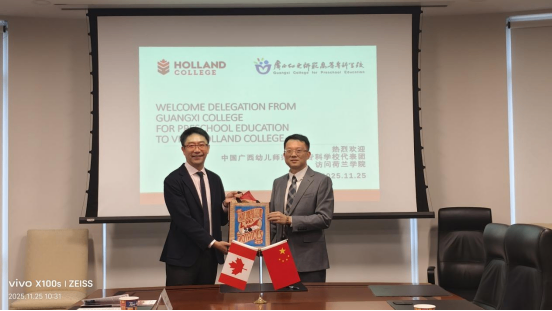 2025年11月24日至30日,广西幼儿师范高等专科学校(以下简称“广西幼专”)副校长谢柳青一行三人远赴加拿大,与荷兰学院开展了为期一周的深度交流访问。